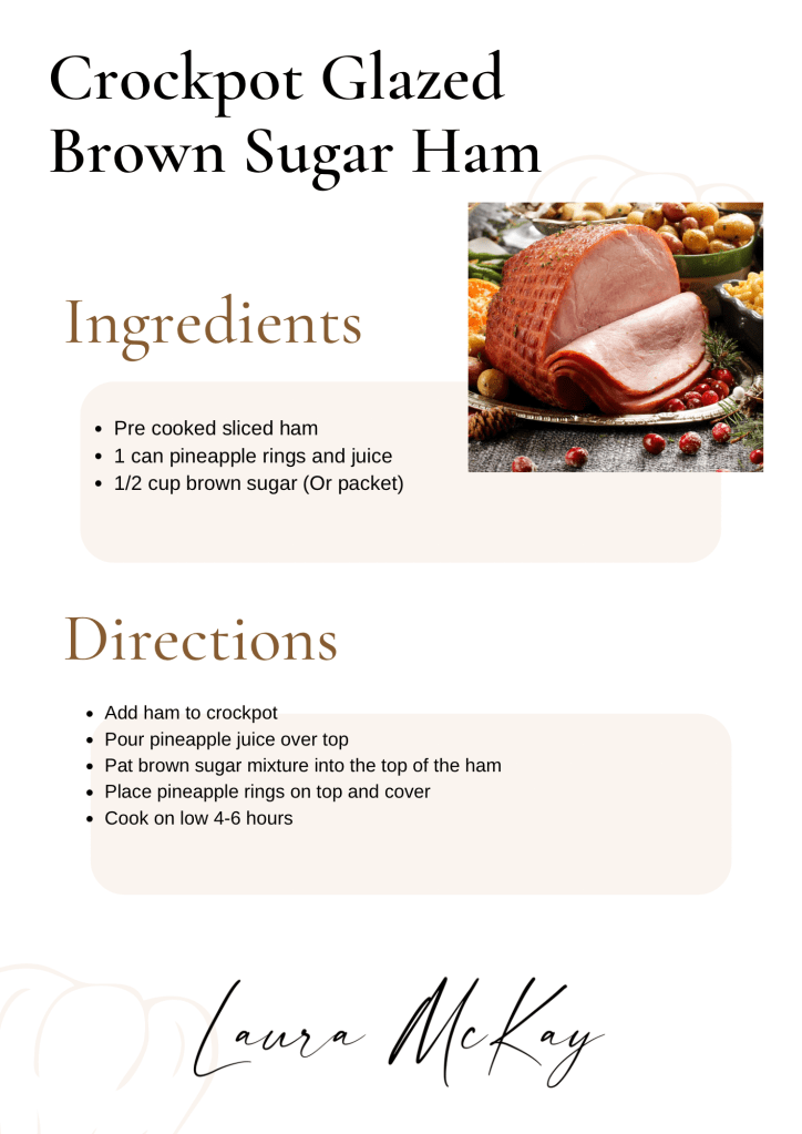 I have never been great at making ham until I tried putting it in the crockpot. Game. Changer. It comes out SO sweet and delicious! It’s tender and has that yummy sauce. Perfection.