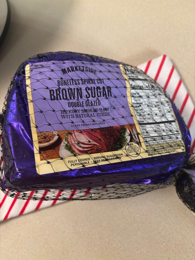 One trick I do is getting the purple (pre sliced) brown sugar ham from Walmart. But don’t fear! If they are out of it, just mix up some brown sugar with a pinch of nutmeg. It works beautifully too.