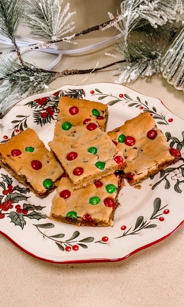 These M&M bars are so easy and a crowd favorite. You can’t mess them up! I love how quick and easy they are to throw together before a holiday party or family gathering.