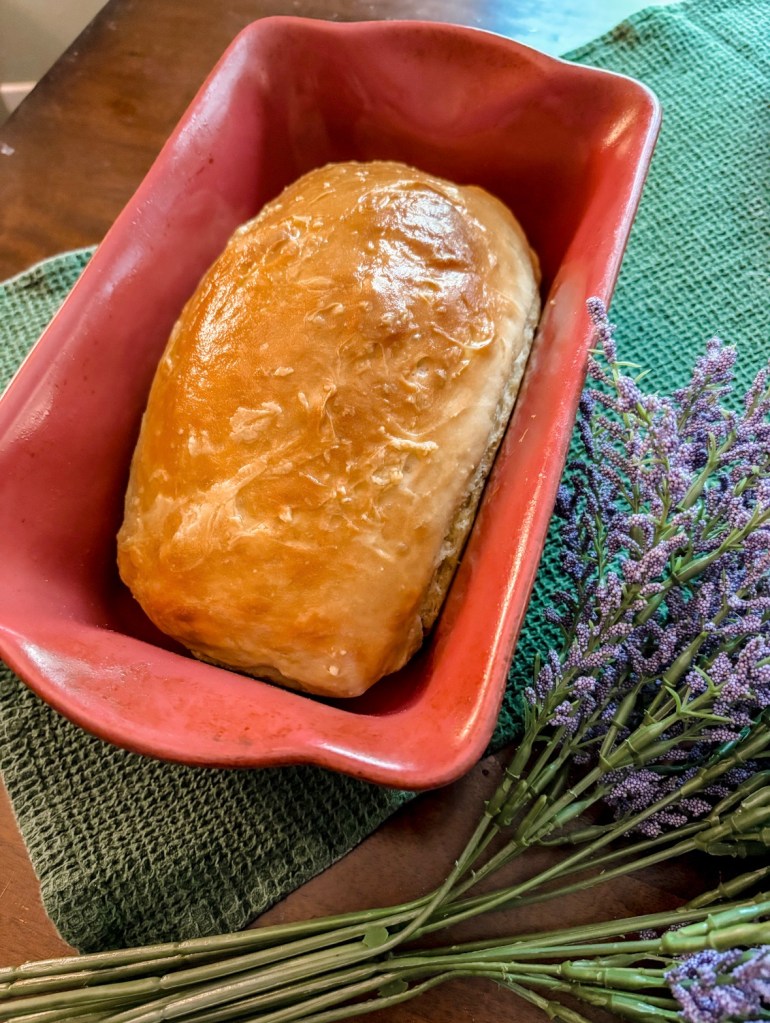 There is just something about a fresh pan of homemade bread. This recipe is the easiest way to make bread, and makes your house so cozy with the smell!