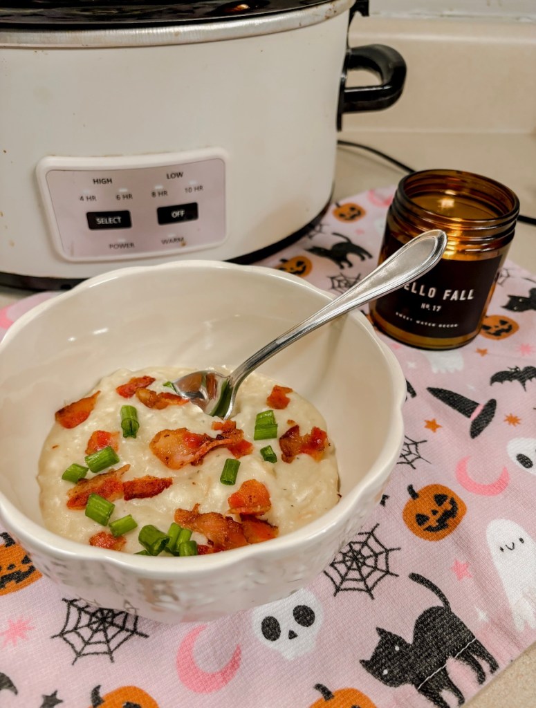 - Serve hot, topped with crumbled bacon and green onions. Enjoy!